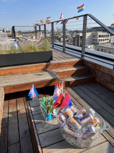 We then held a Pride celebration for all our staff on our offices’ roof terrace, where we once again served Proud Beer, an LGBTQ+-owned business which donates a share of its profits to Diversity Role ModelsThe Albert Kennedy Trust and The Terrance Higgins Trust.